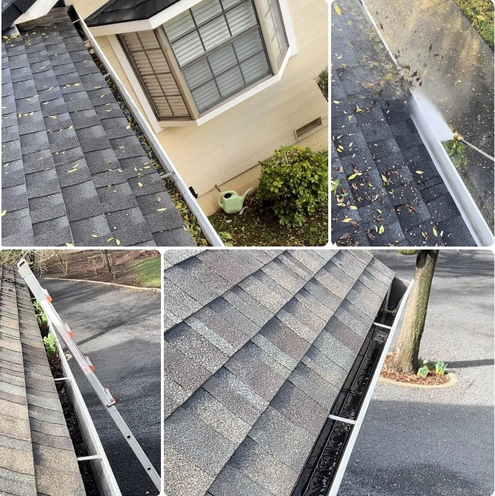 Removal of Leaves & Debris from Gutter and Down Spouts as well as Rinse of Gutter Interior & Whitening of the Exterior!